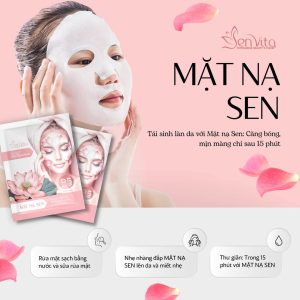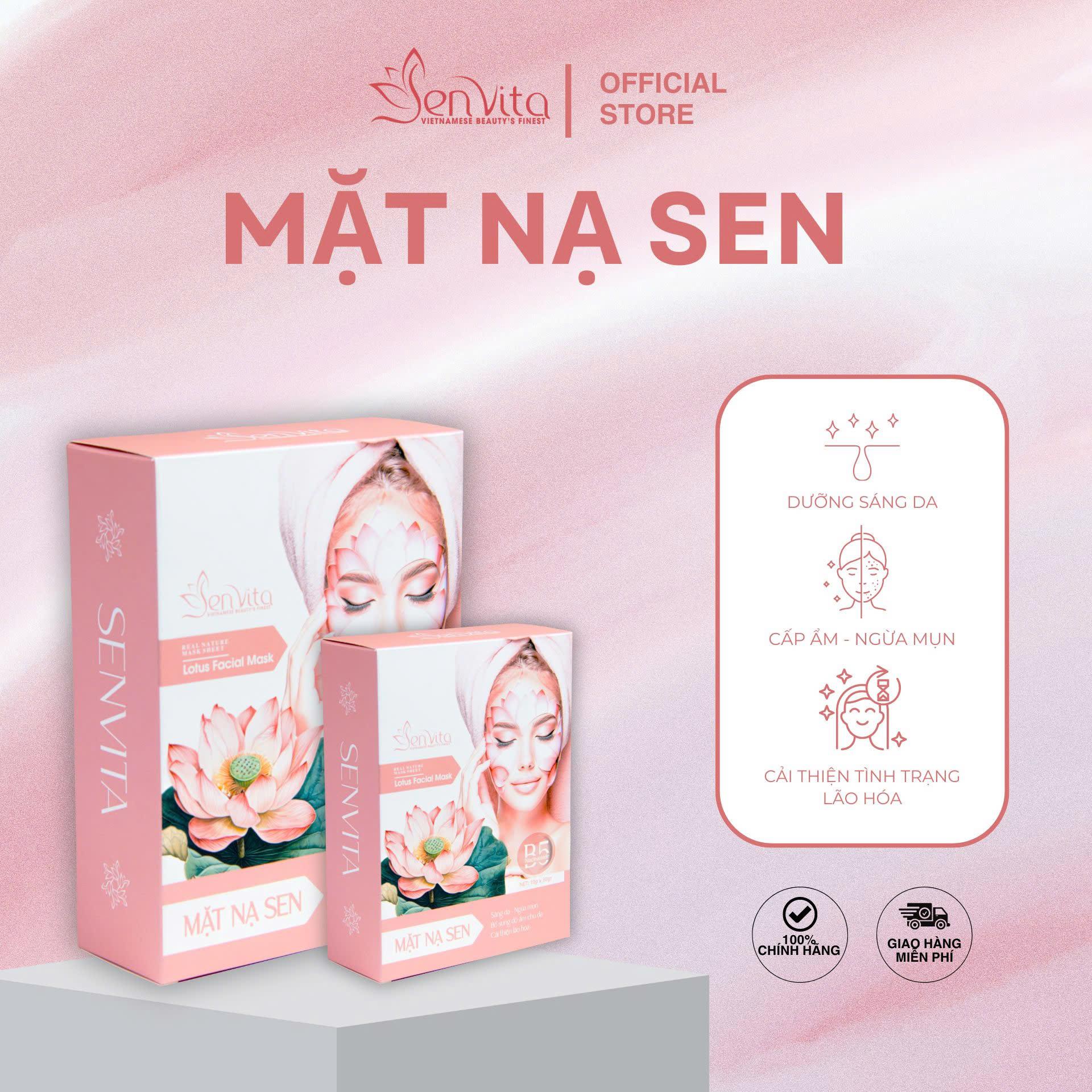 | Ưu điểm và khác biệt của Mặt Nạ Senvita: Được chưng cất chiết xuất từ hoa Sen tươi tự nhiên và kết hợp với dưỡng chất quý Niacinamide B3, Vitamin B5 Hyaluronic Acid (HA), Nhân sâm đen (Hắc sâm) Hàn Quốc giúp dưỡng sáng da hiệu quả, cấp ẩm giữ ẩm da, ngừa mụn giảm mụn, ngăn ngừa và hổ trợ làm giảm các dấu hiệu sạm nám tang nhang, lão hóa, giúp da tươi tắn, trắng sáng mịn màng tự nhiên, đắp mặt nạ thường xuyên tuần 3 – 4 lần/tuần để cải thiện làn da và thư giản cùng hoa sen thuần khiết. + Senvita cam kết các thành phần lành tính an toàn cho da , không chất gây hại cho da, nên khách hàng an tâm khi dùng và trải nghiệm, Senvita luôn cam kết và bảo đảm về chất lượng an toàn vì sức khỏe người tiêu dùng. |